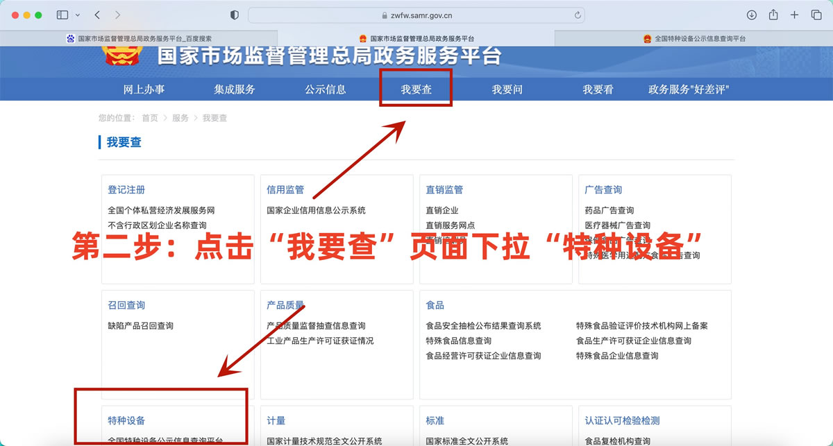 點擊“我要查”頁面,下拉出“特種設備”
