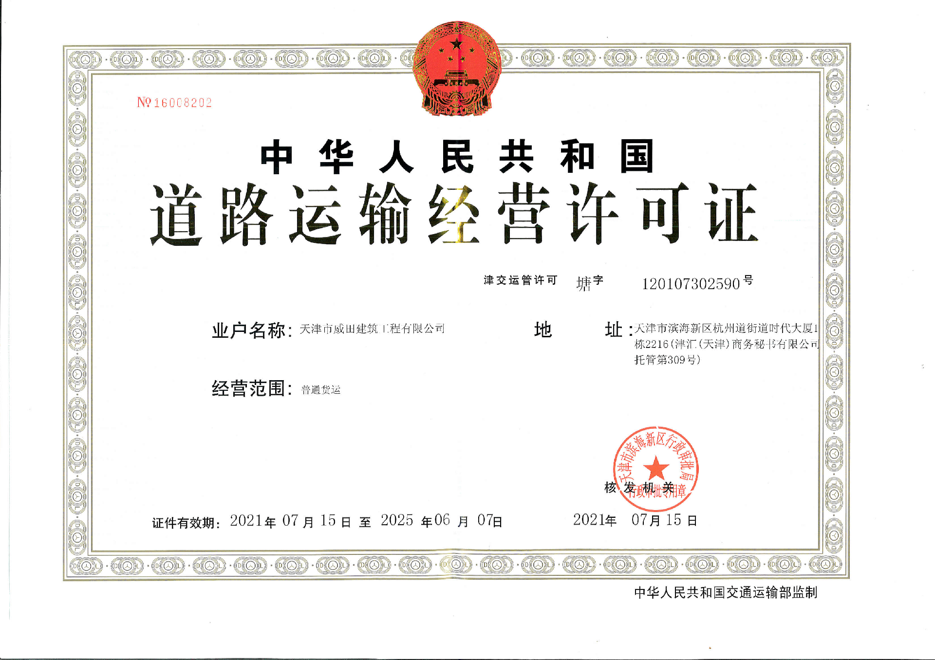 企業(yè)名稱:天津市威田建筑工程有限公司