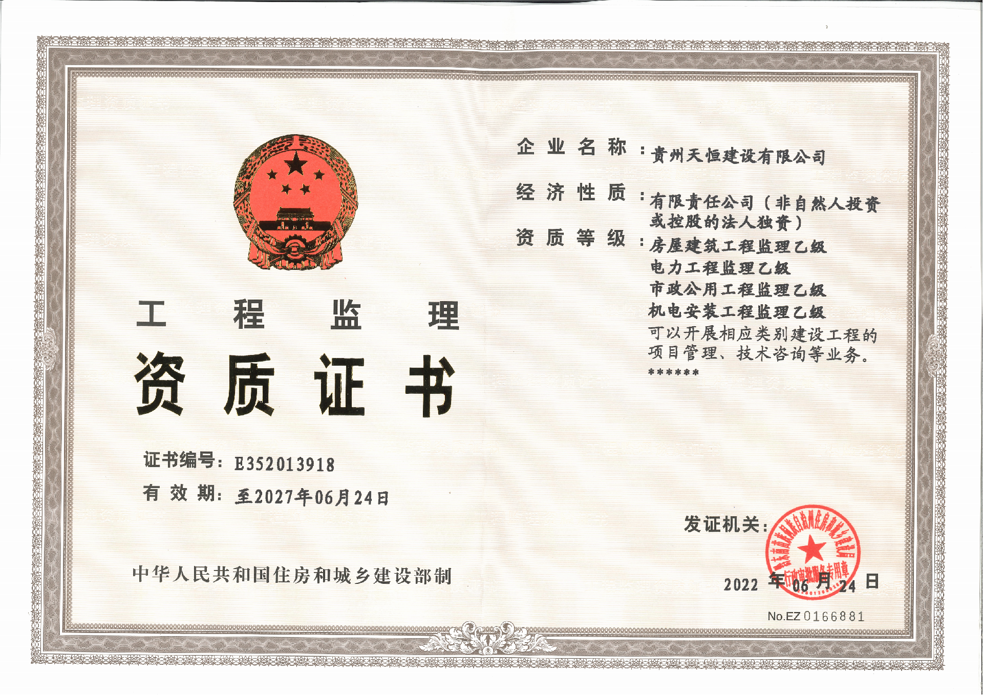 工程監理機電安裝工程專業乙級防水防腐保溫工程專業承包貳級